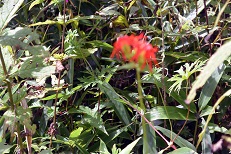 去年の夏は山頂駅から右手の森に入りホテイアツモリソウの場所を教えてもらってから砂利道に出て湿原への木の階段に直行する道を採ったが、今回は右手の森の中を迂回して湿原に出る道を採った。森の中を歩いて、湿原にはないイヌトウバナ、フシグロセンノウ、レンゲショウマ、エンビセンノウを見ることが出来た。エンビセンノウは1株だけ、柵から遠く手を伸ばして写真を撮ったが手振れしてしまった。