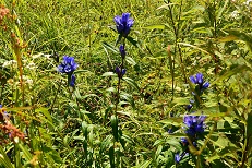 湿原に入ると、エゾリンドウの数の多さに驚いた。ゴマナ、アキノキリンソウ、ヤマハハコも多く、アケボノソウ、ウメバチソウ、ツリフネソウ、ホソバトリカブトも咲いていた。